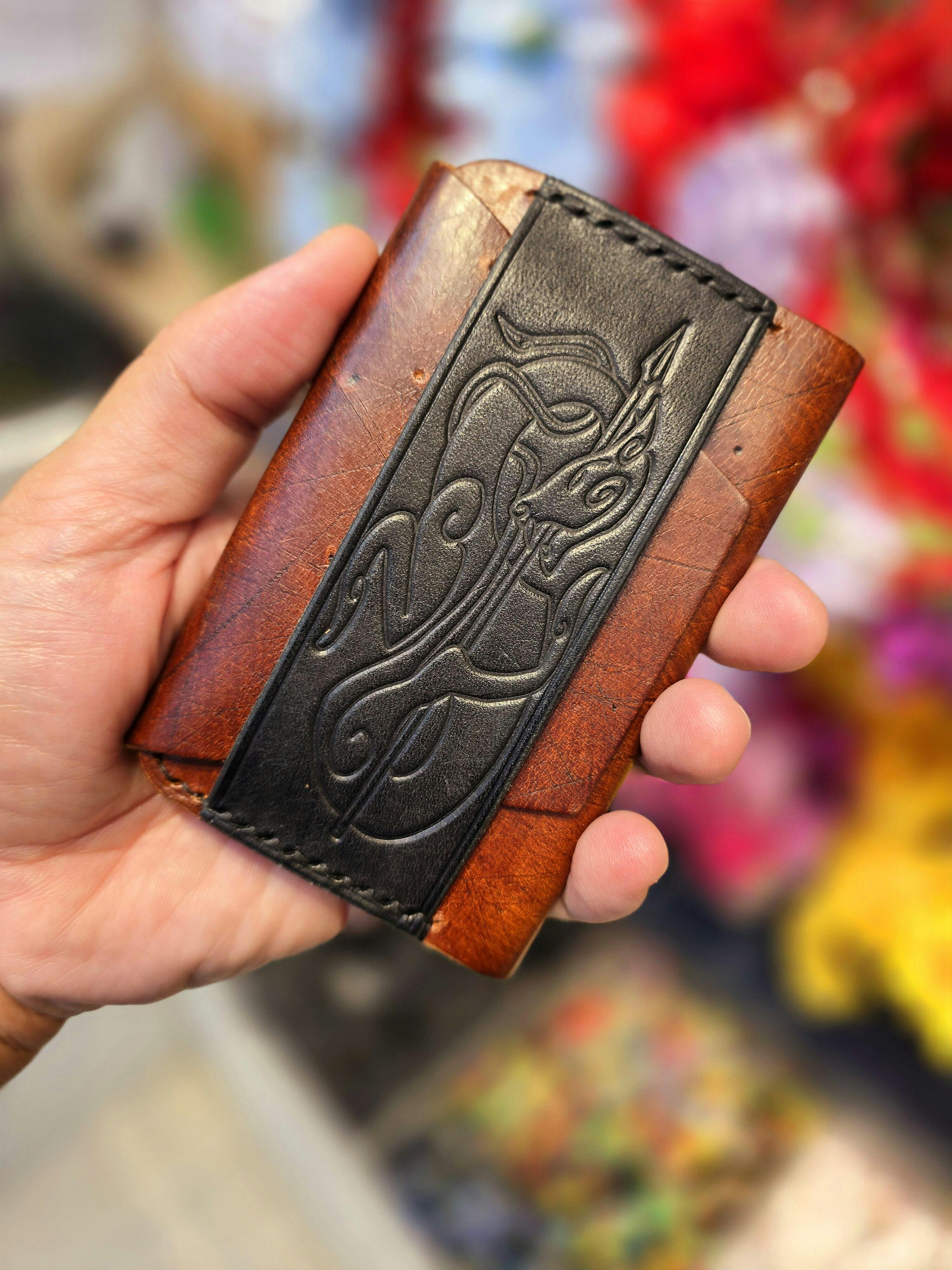 This piece features a unique design with a main quick draw pocket and a foldable flap to tuck cash into, A neat solution for someone seeking a minimal wallet design with extra room for cash.