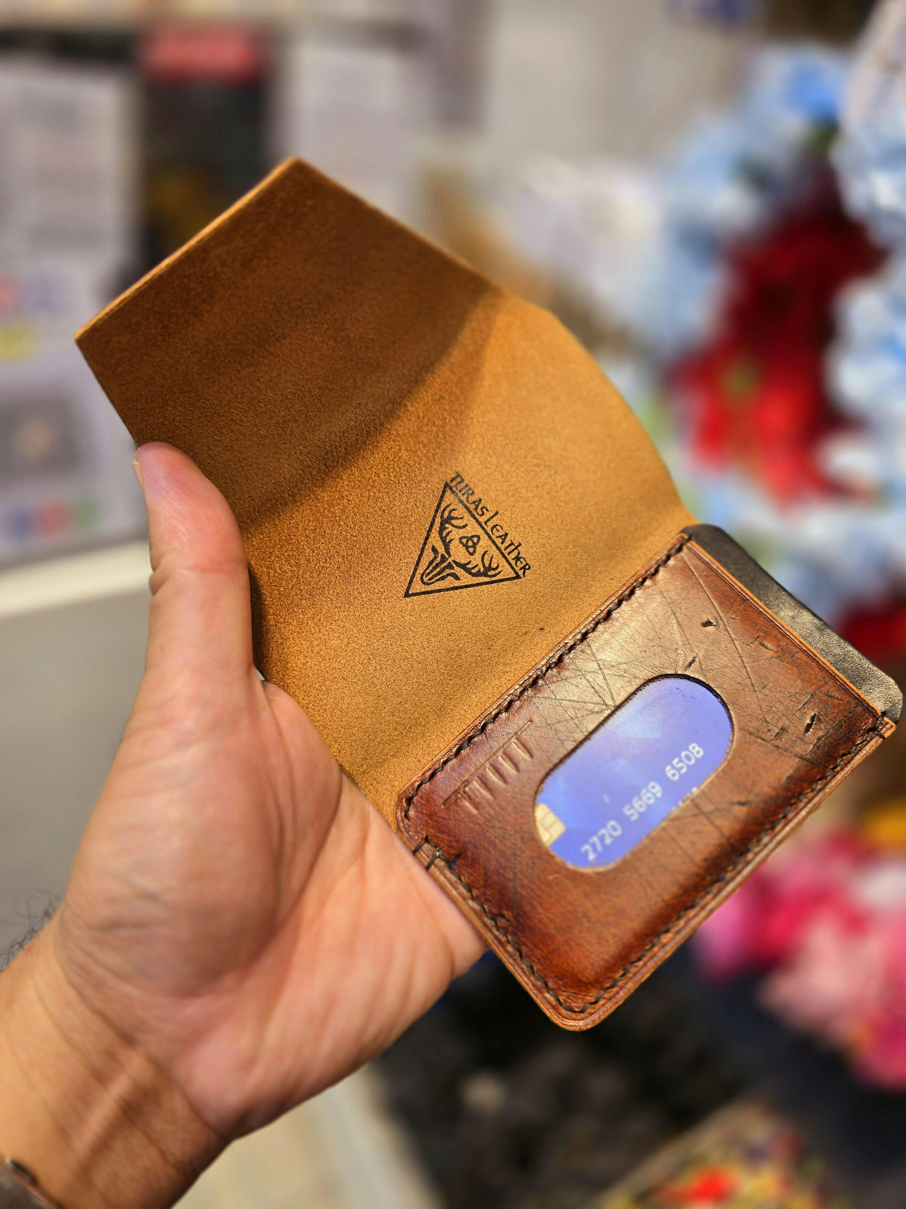 This is a slim card wallet design in Pueblo Badalassi Carlo Italian full grain leather.